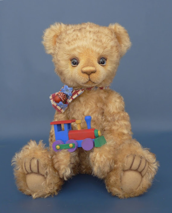 Sonny is made from a lovely curly tipped mohair with 100% wool felt paw pads with pulled toes. I closely trimmed his muzzle and added pigmentation for more expression and you can see he is smiling when in profile. He has cornflower blue glass eyes with elaborate needle-felting and eyelids. I shaded his floss nose, toes and inner ears. He is fully jointed and stuffed with polyfil and has a tush tag and comes with a Certificate of Authenticity. Layaway available, see below for details.